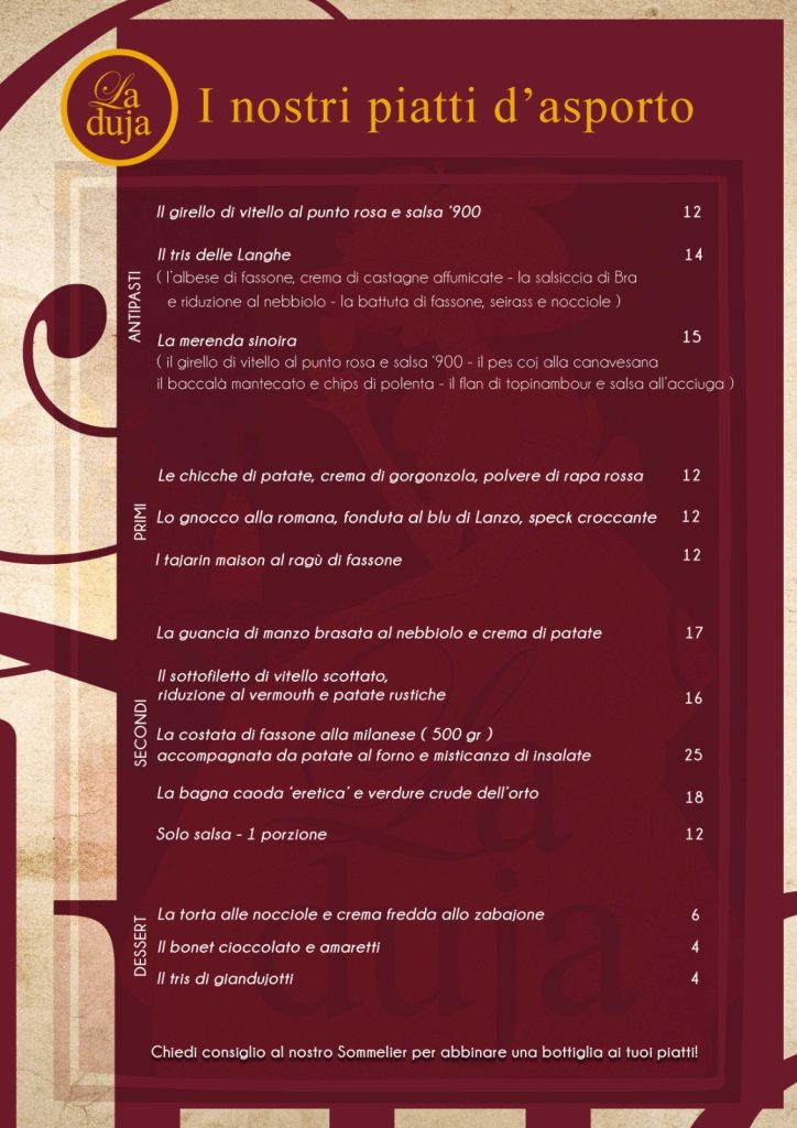 Il girello di vitello e salsa ‘900 – il tomino ubriaco – la nostra giardiniera di verdure – il tartrà piemontese e fonduta di toma – 18€
